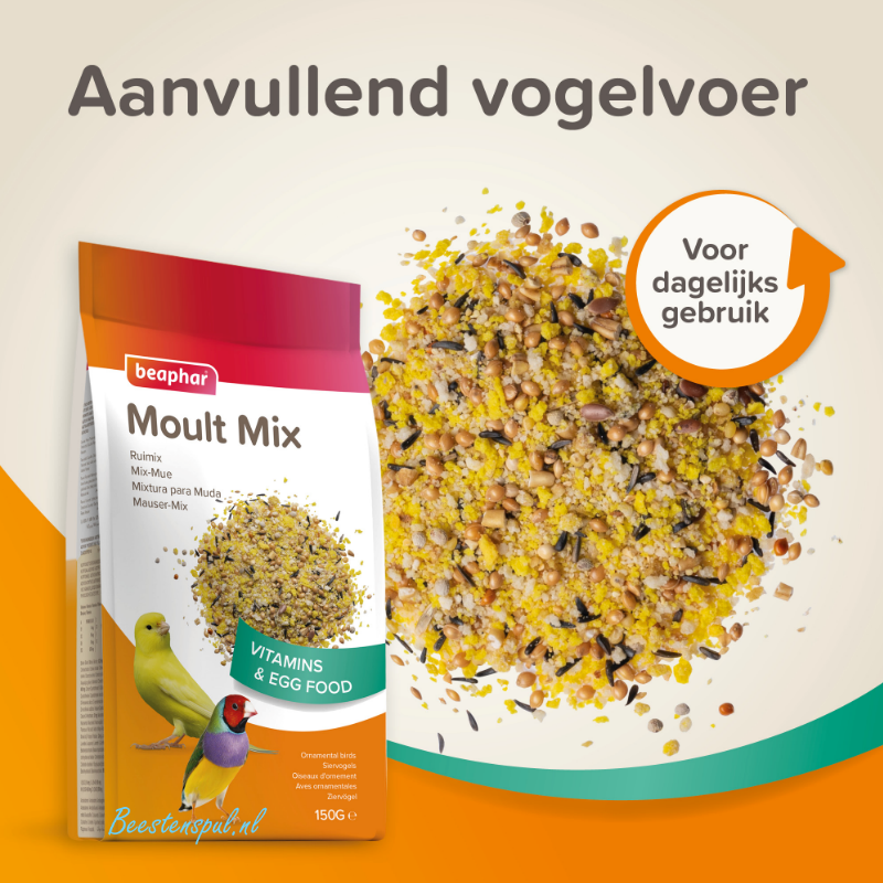 Beaphar Ruimix is een aanvullend diervoeder, dit zorgt voor een snelle en volledige rui en geeft een glanzend verenpak.