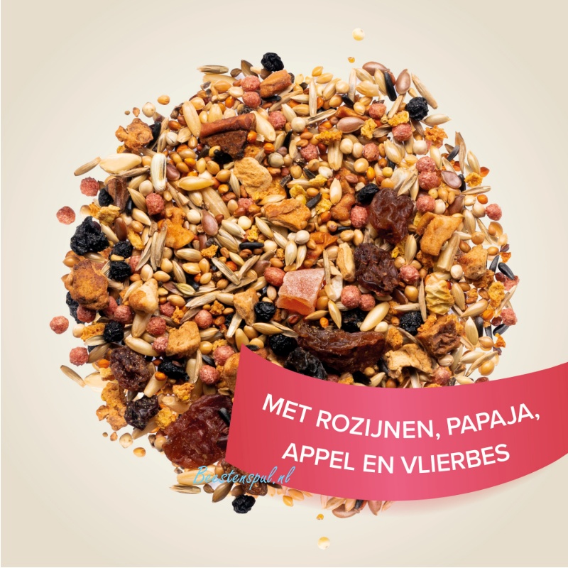 Bevat veel lekkere vruchten (sinaasappel, krenten, rozijnen, rozenbottels), zaden, granen, honing en waardevolle vitaminen.