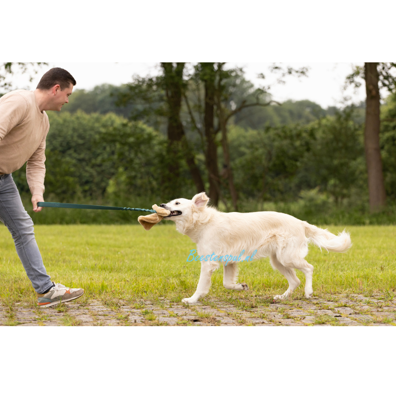 Een dummy met schokdemper en een gevoerd handvat, ideaal om met de hond te spelen en te trainen.