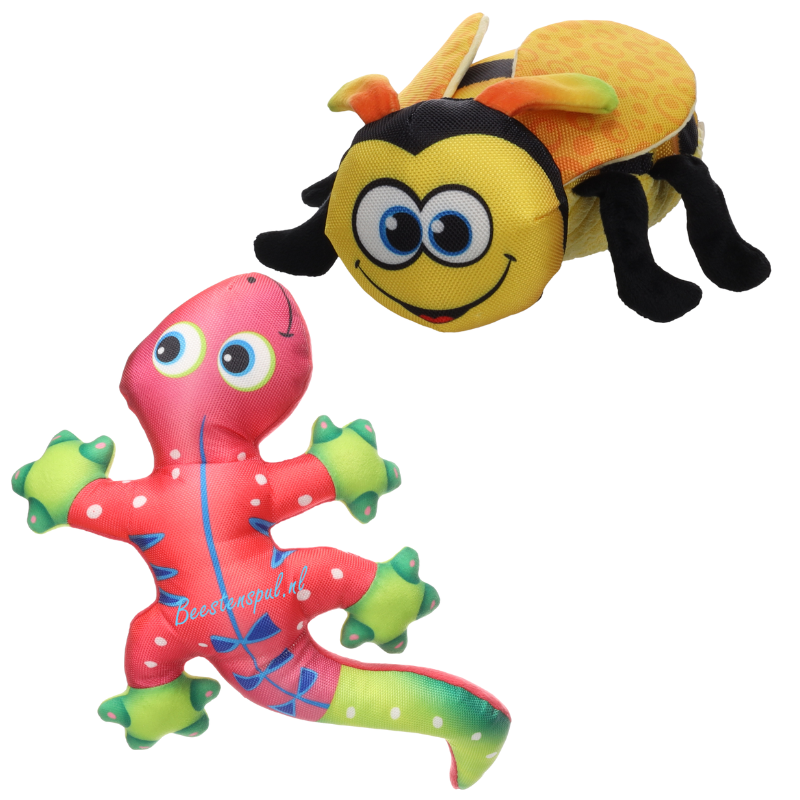 Gemaakt van stevig textiel en pluche, afgewerkt met ribfluweel en voorzien van geluid en knisperende effecten.