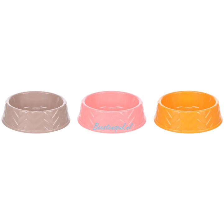 Deze vrolijk gekleurde voerbakjes zijn gemaakt van kunststof en verkrijgbaar in meerdere kleuren.