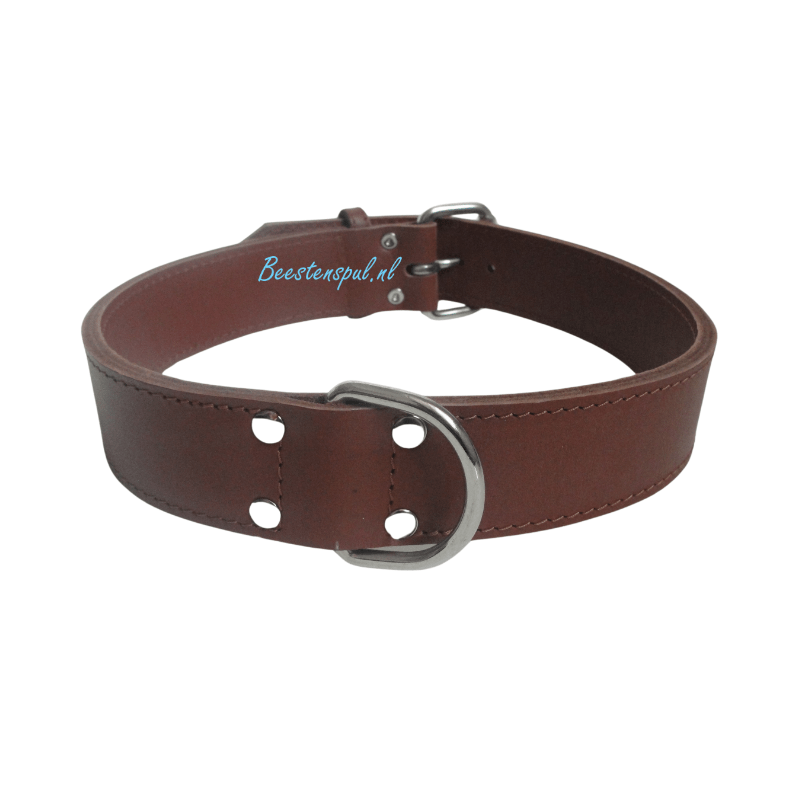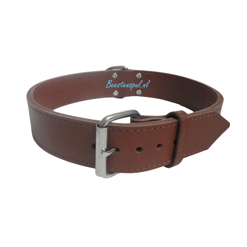Stevige dubbel gestikte halsband met chroom afgewerkt.
