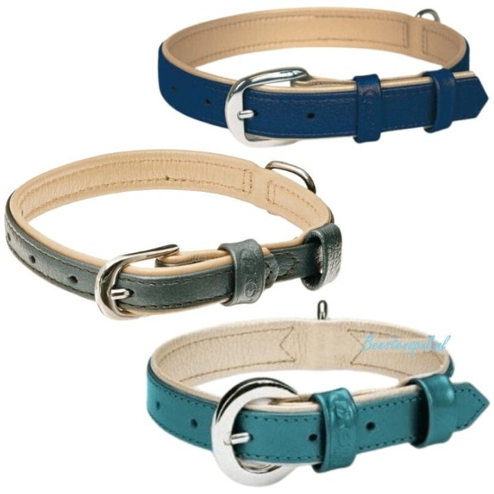 De Elégance halsbanden zijn gevoerd met zacht kalfsleder en bovenop zit een Art-Lakleder metallic effect.