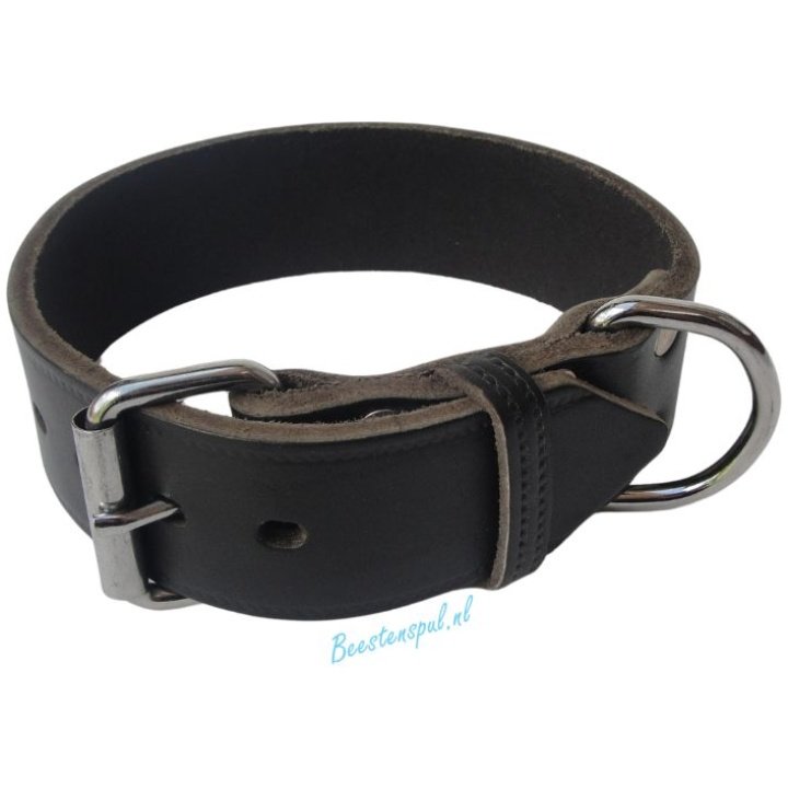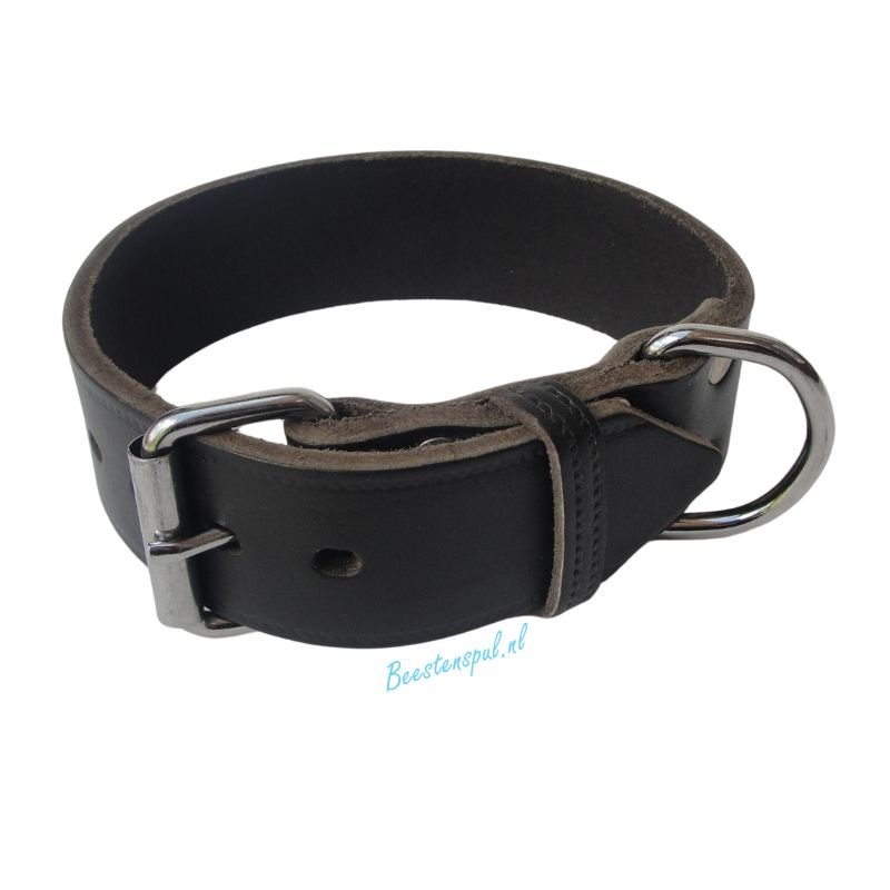 Stevige en dikke, maar soepele en zachte halsband, afgewerkt met chroom.