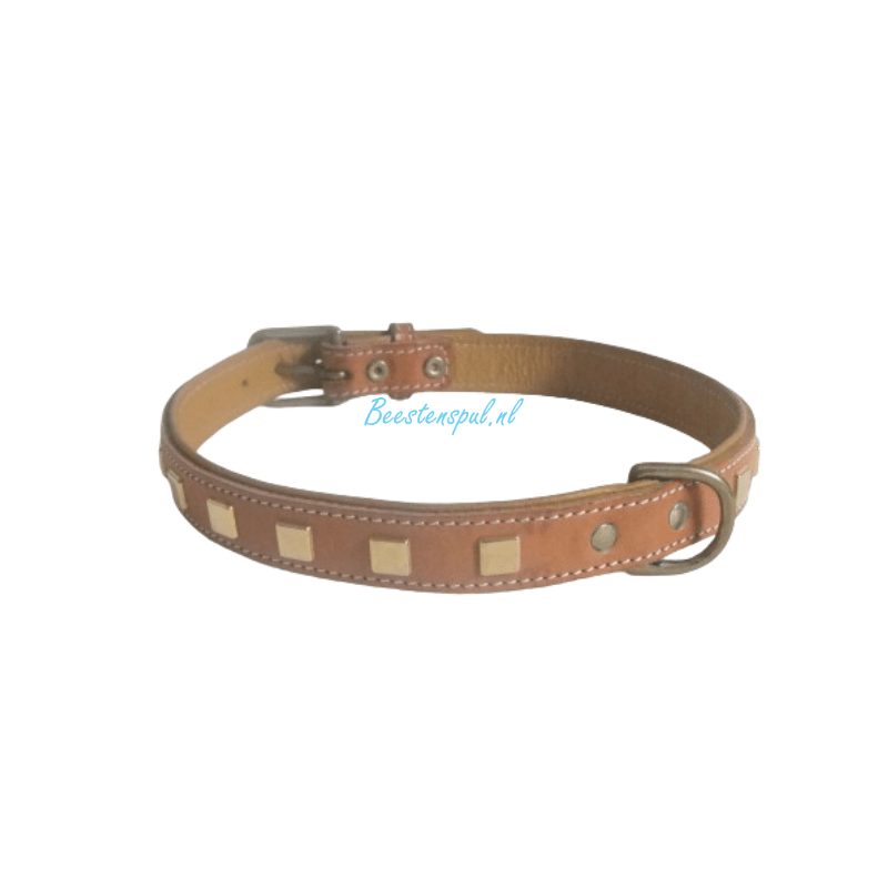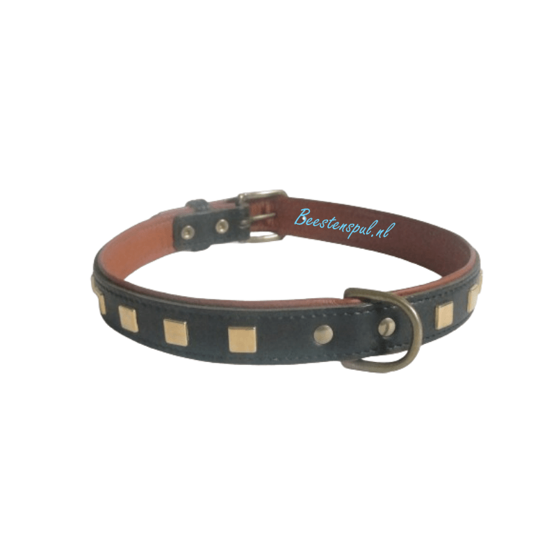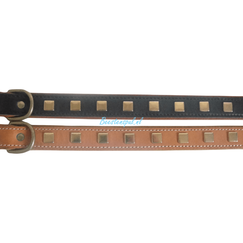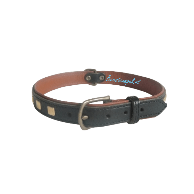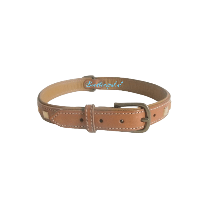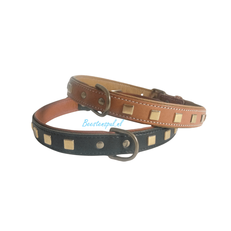 Halsband Limoges is gevoerd met kalfsleer en afgewerkt met messing studs.