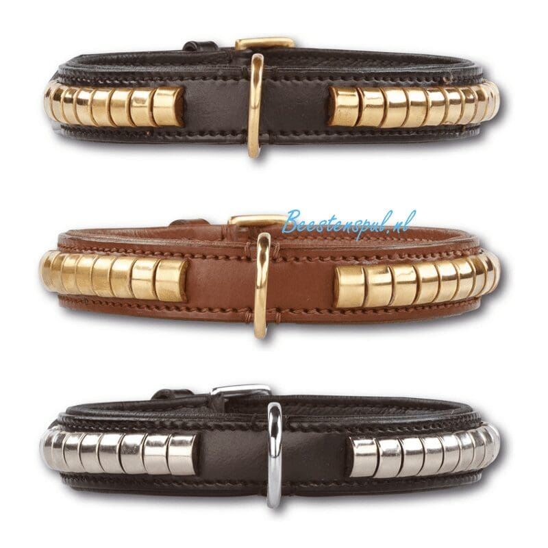 Dik lederen halsband met zilver- of goudkleurige versiering!