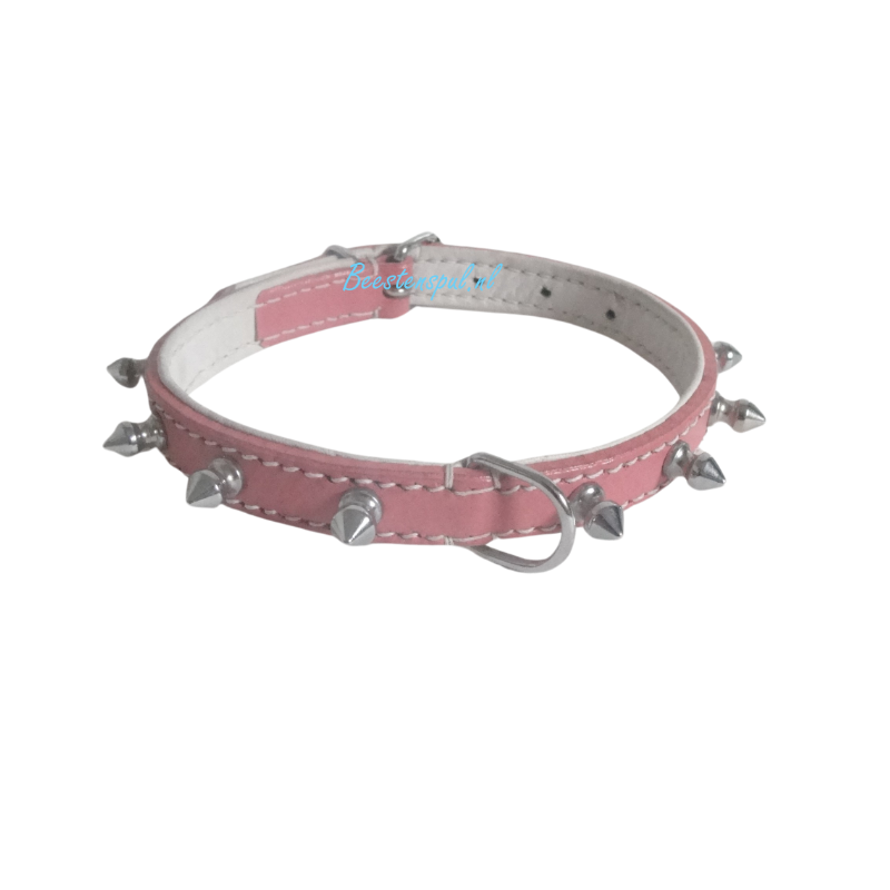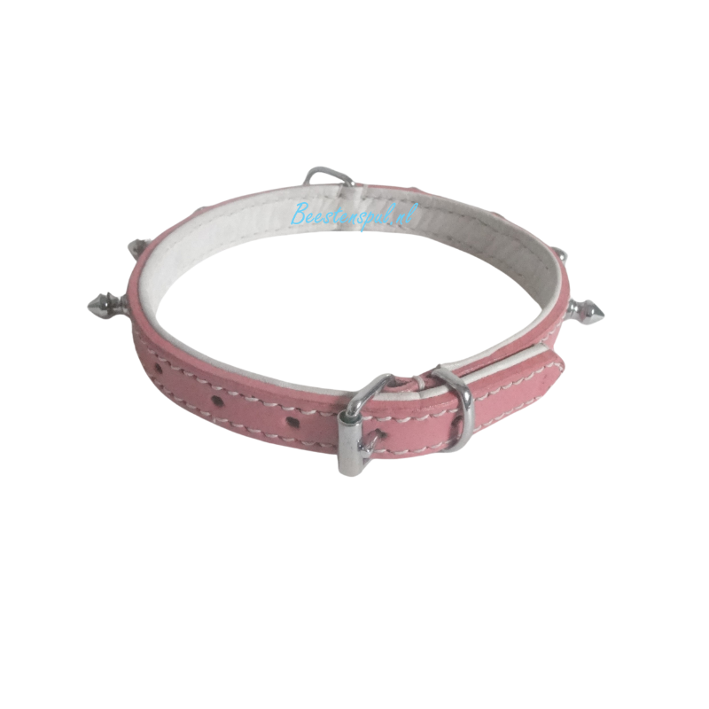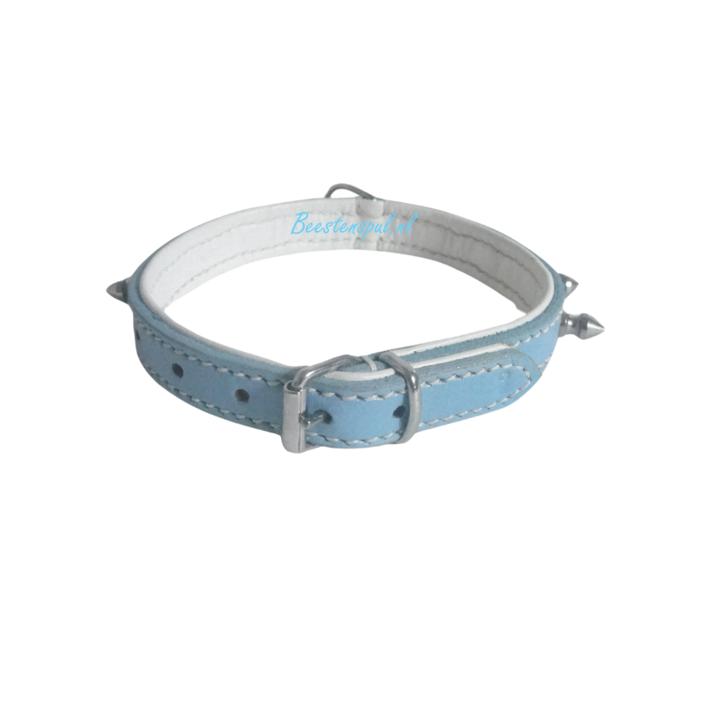 Stoere, maar speelse met wit leder gevoerde halsband met spikes van 6 mm hoog.