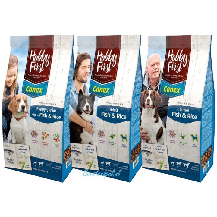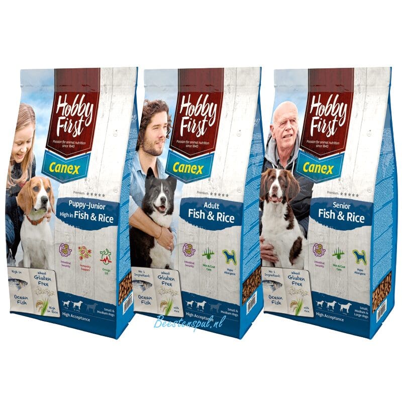 HobbyFirst Canex Vis en Rijst zijn brokken op basis van vis en rijst en verkrijgbaar voor honden van elke leeftijd.