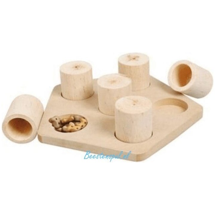 Denkspel, maar kan ook gegeven worden als anti schrokbak zodat schrokken voorkomen wordt.