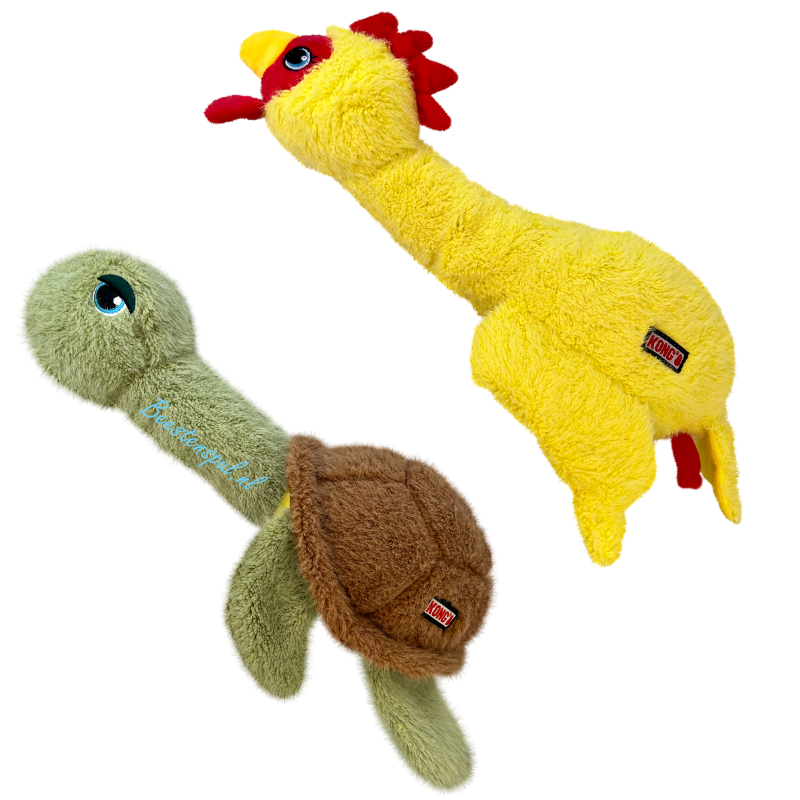 De lange nekken zijn gevuld met een luide pieper met unieke textuur om je hond te laten knijpen, rondgooien en spelen.