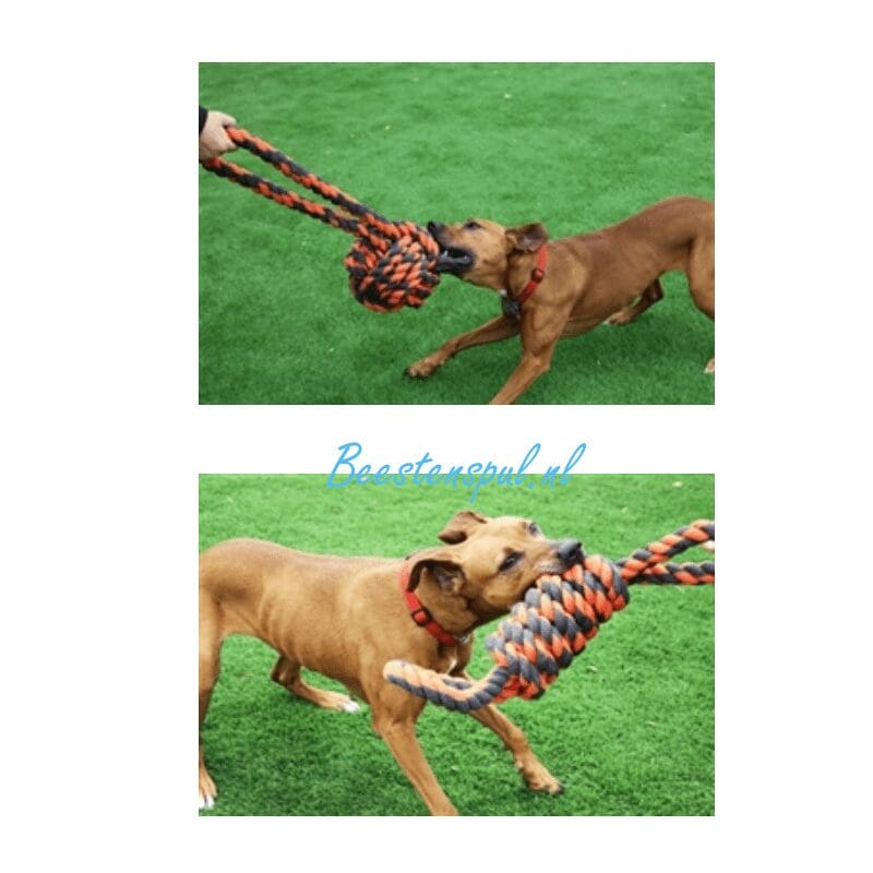 Extreem sterk flosstouw voor de grootste honden, dat niet afgeeft.