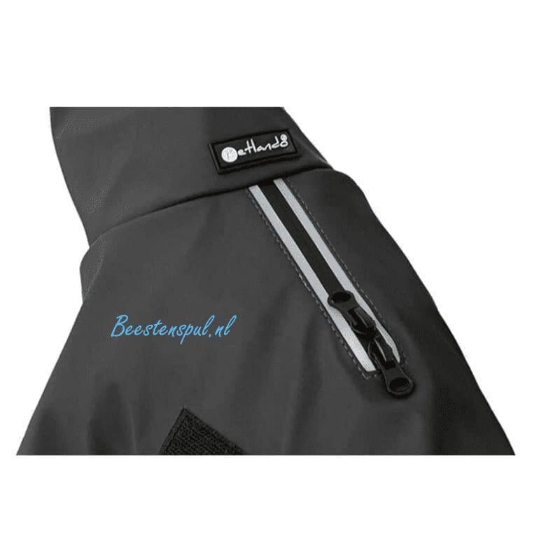 Trendy waterdichte jas van Petlando voor de hond, voorzien van reflecterende strepen.