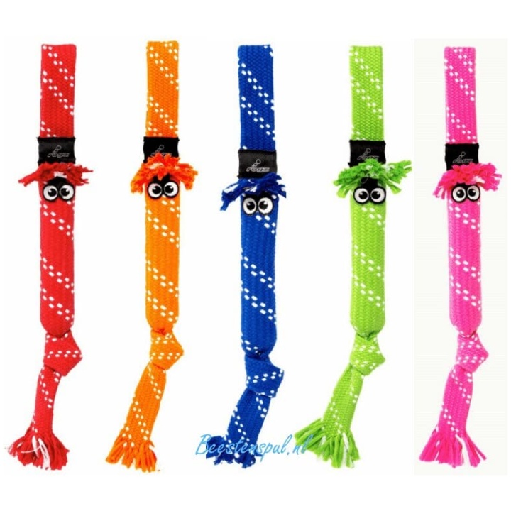 Aan de andere kant heeft het speeltje een knoop en hier ook wat los touw.