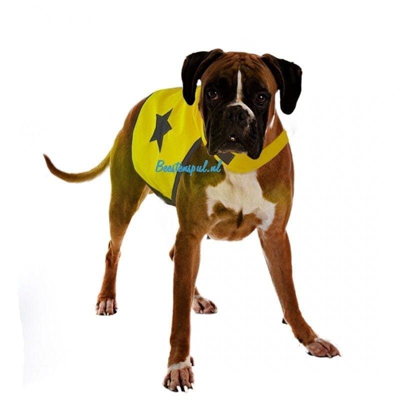 Door de fluorescerende kleur en de reflecterende randen en ster zal uw hond goed opvallen tijdens de donkere dagen/avonden.