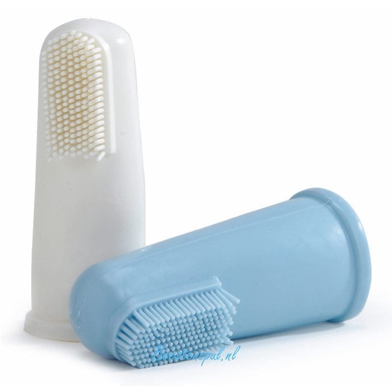 Zachte flexibele vingertandenborstel houdt bij geregeld poetsen het gebit en tandvlees gezond!
